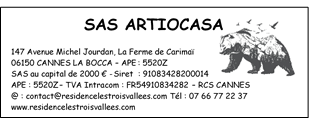 Notre siège social principal est situé a cannes la bocca, notre établissement secondaire est lui situé à ARREAU.